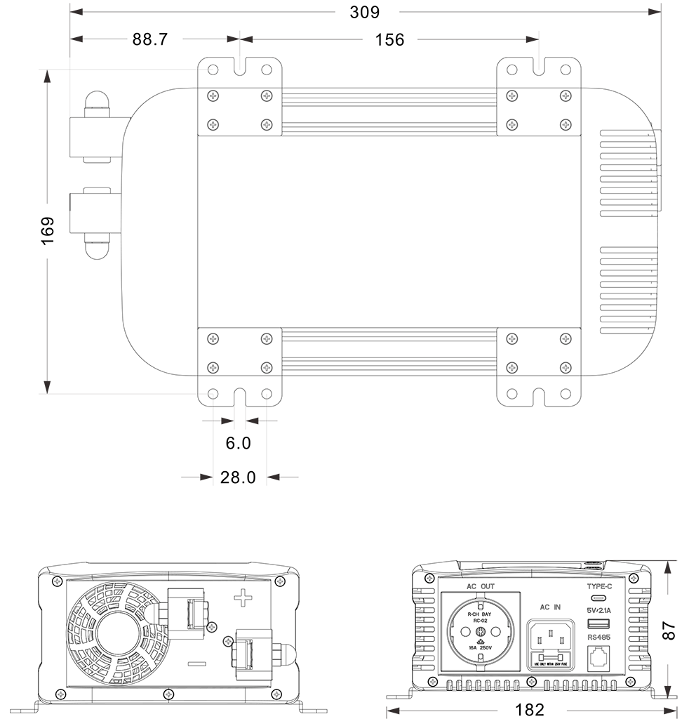 مکینیکل ڈرائنگ: (309x182x87 ملی میٹر)