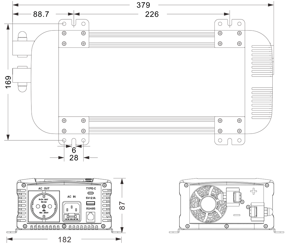 مکینیکل ڈرائنگ: (379x182x87 ملی میٹر)