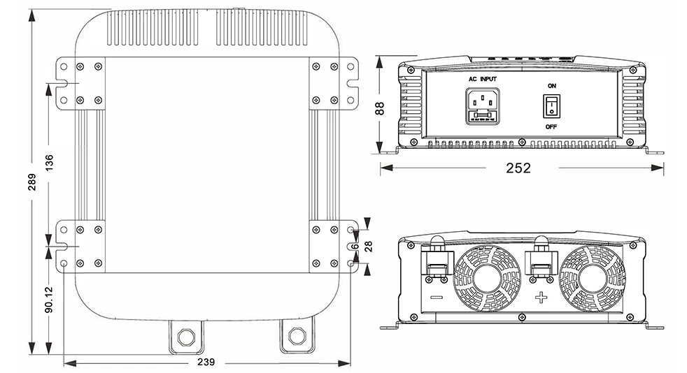 مکینیکل ڈرائنگز: (289x252x88 ملی میٹر)