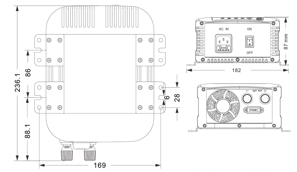 مکینیکل ڈرائنگ: (236.1 × 182 × 87 ملی میٹر)