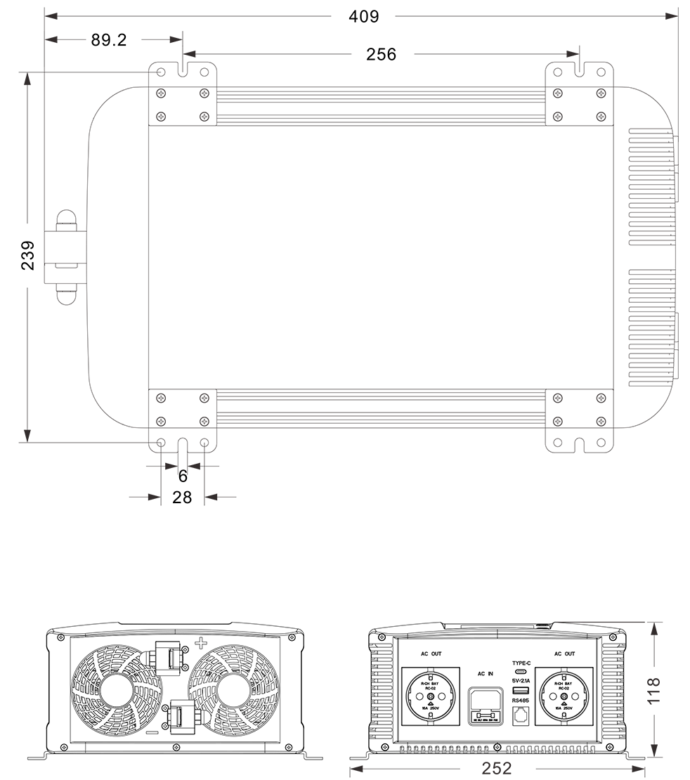مکینیکل ڈرائنگ: (409x252x118 ملی میٹر ملی میٹر)