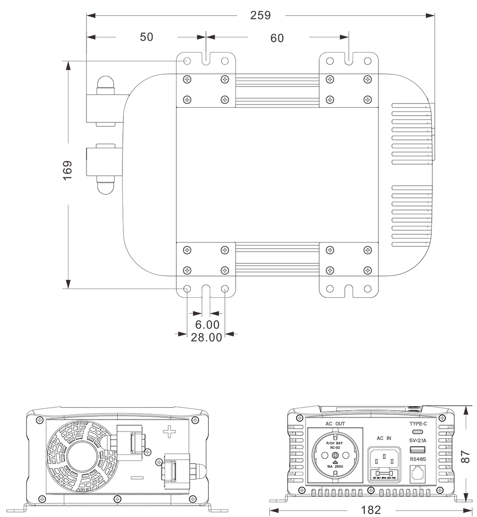 مکینیکل ڈرائنگ: (259x182x87 ملی میٹر)